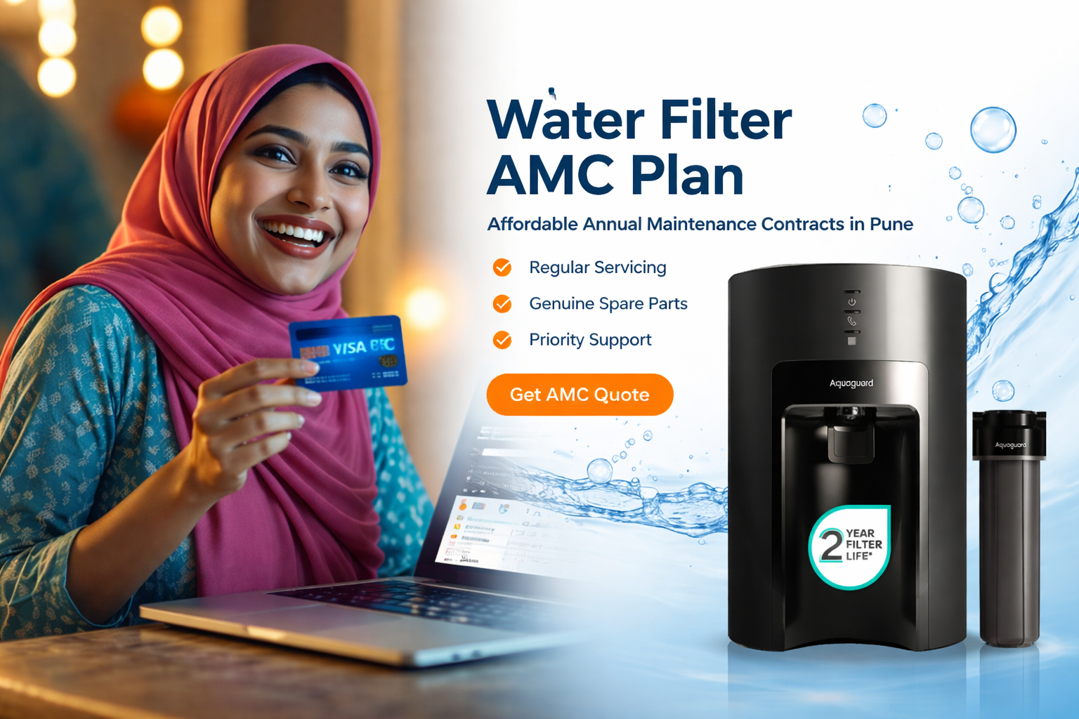 Affordable annual maintenance contracts (AMC) for water purifiers and aqua filters with regular servicing and priority support.